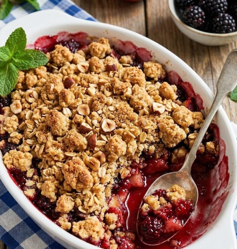 This Mary Berry Blackberry and Apple Crumble Recipe is a timeless British pudding with a soft, gently spiced fruit base and a crisp, buttery crumble topping. The apples turn tender, the blackberries add a lovely sharpness, and the topping bakes golden and crunchy. It is an easy, homely dessert that suits all levels of baking experience. From start to finish, it takes around 50 minutes and delivers comforting results every time.