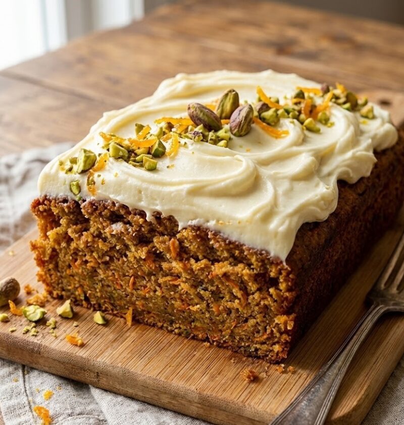 - Assemble and Finish: Spread the cream cheese topping evenly over the cooled cake. Finish with a light scattering of orange zest, then cut into neat squares or slices to serve.