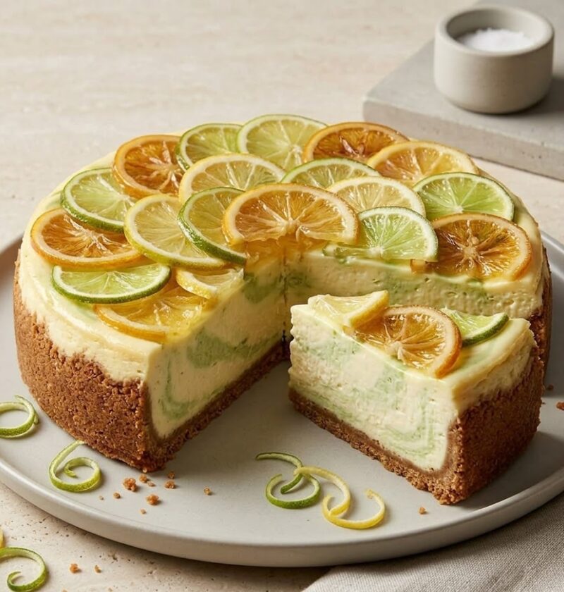 This Mary Berry Lemon and Lime Cheesecake is a fresh, zesty dessert with a smooth, creamy texture and a crisp biscuit base. The combination of lemon and lime gives the filling a bright citrus flavour that balances beautifully with the richness of the cream cheese. It is a simple no-bake cheesecake that looks elegant yet requires very little effort. The recipe is beginner-friendly and takes about 25 minutes to prepare, plus chilling time.
