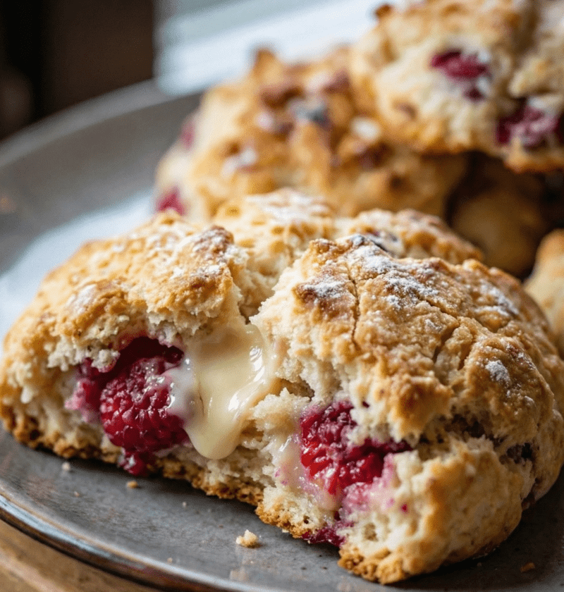 minutesSoft, lightly sweet scones filled with juicy raspberries and creamy white chocolate, perfect for afternoon tea.